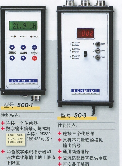 施密特張力儀SC系列可用于一個(gè)或多個(gè)傳感器,進(jìn)行數(shù)據(jù)分析的數(shù)字或模擬顯示單元。
