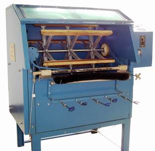該設(shè)備是把繅絲小或上的絲適當(dāng)烘干并形成可編絞的絲片。整機(jī)采用調(diào)速電機(jī)調(diào)速,具有體積小,效率高,操作方便等特點(diǎn),適用于小型制絲企業(yè)以及纖維檢驗(yàn)機(jī)構(gòu)、科研院所等。