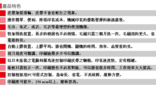 您所在的位置:紡機(jī)網(wǎng) >> 宗龍機(jī)械股份有限公司 >> HB-1800皮帶式噴墨印花機(jī)