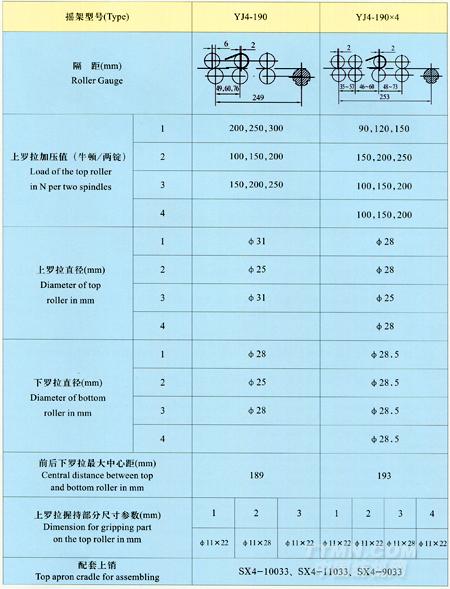 YJ4-190系列粗紗彈簧搖架主要技術(shù)參數(shù)