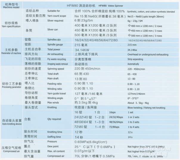 新型渦流紡是集機(jī)電一體化和工序一體化的高速紡紗機(jī),是當(dāng)前紡紗領(lǐng)域的一項(xiàng)新技術(shù),具有眾多優(yōu)越性。經(jīng)過您們使用會(huì)發(fā)現(xiàn)渦流紡獨(dú)特的紗線結(jié)構(gòu)和性能獲得您的高度評(píng)價(jià)。使您公司獲得高附近加值的產(chǎn)品。
