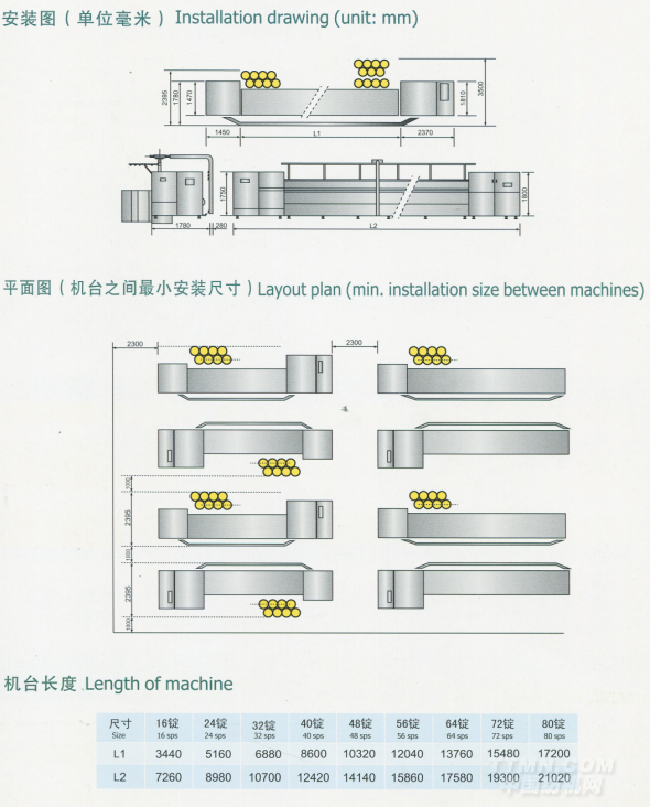 以1萬紗錠為例,對(duì)設(shè)備占地面積,設(shè)備配置,檔車工人數(shù),保全工數(shù)和能耗等項(xiàng)目來比較。