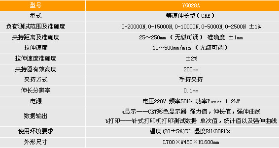 YG028A型萬(wàn)能材料試驗(yàn)機(jī)是采用PC機(jī)控制,按照等速伸長(zhǎng)原理(CRE)工作,用于測(cè)定各種織物以及土工布的抗拉斷裂伸長(zhǎng),以及頂破和刺破強(qiáng)力和伸長(zhǎng),并將測(cè)試數(shù)據(jù)統(tǒng)計(jì)后由打印機(jī)輸出,需要時(shí),也可打印強(qiáng)力伸長(zhǎng)曲線。還可以測(cè)定其它復(fù)合材料的斷裂強(qiáng)力和斷裂伸長(zhǎng)。