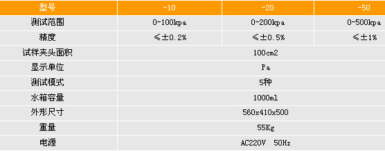 用于緊密織物,如帆布、油布、帳篷布,苫布,非織造布及防雨服裝布,涂層織物等抗?jié)B水性能測試。