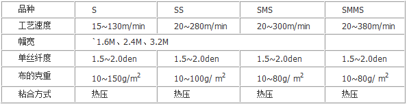 丙綸紡粘無(wú)紡布品種及參數(shù):