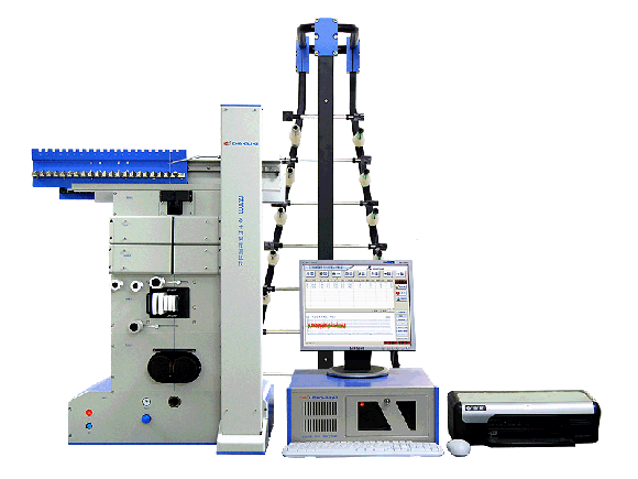 CT3000條干儀由檢測分機、主處理機(包括顯示器、鍵盤、鼠標)、打印機、供紗架等組成。
