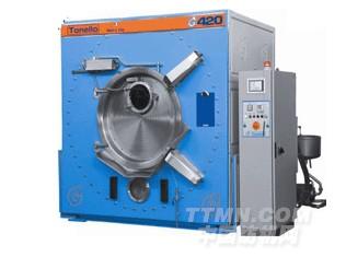機器轉(zhuǎn)鼓上裝有特殊的檔條,在轉(zhuǎn)鼓加速時衣物貼在轉(zhuǎn)鼓壁上同時旋轉(zhuǎn),保證效果均勻,并能獲得很好地柔軟手感。最高轉(zhuǎn)速為110 RPM,能對成衣進行預脫水。