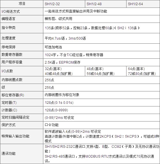 可擴(kuò)展整體式PLC SH/SH1/SH2系列