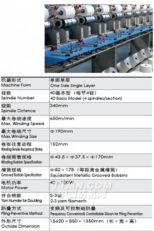 主要適用于棉、毛、滌、化纖及混紡的合股加工,也可適用于氨綸并紗,把不同規(guī)格的原料筒子并成倍捻機上加工的平行筒子。
