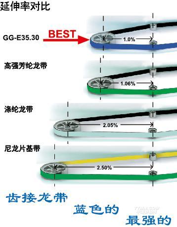 新型齒接傳動(dòng)帶GG-E系列,其強(qiáng)力層采用Polyester材質(zhì),不同于傳統(tǒng)尼龍片基傳動(dòng)帶,模量大,接口無(wú)方向性,具有不可比擬的特點(diǎn)與優(yōu)點(diǎn)。
