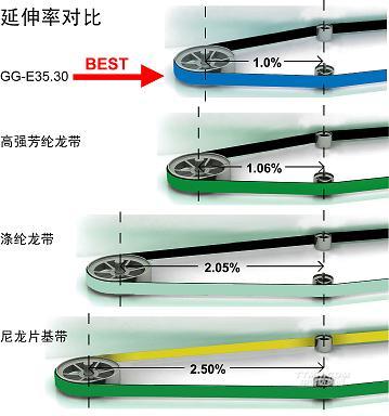 新型齒接傳動帶GG-E系列,其強(qiáng)力層采用Polyester材質(zhì),不同于傳統(tǒng)尼龍片基傳動帶,模量大,接口無方向性,具有不可比擬的特點與優(yōu)點。