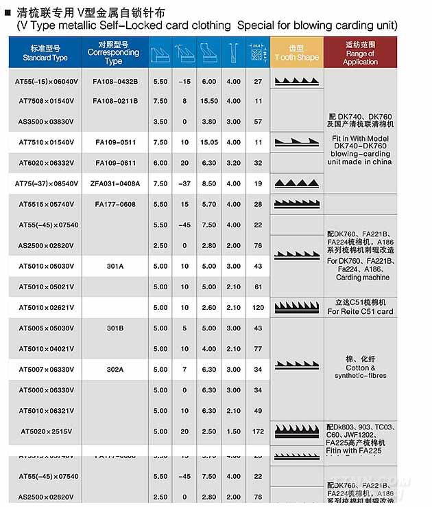 清梳聯(lián)專用V型金屬自鎖針布
