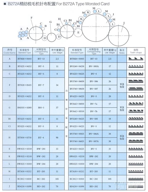 您所在的位置:紡機網(wǎng) >> 光山白鯊針布有限公司 >> B272A精紡梳毛機針布配置