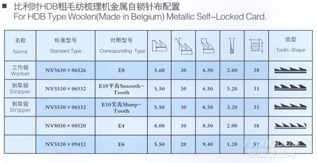 比利時(shí)HDB粗毛紡梳理機(jī)金屬自鎖針布配置