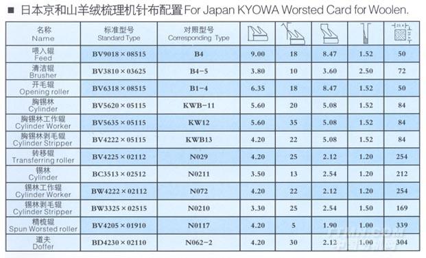 您所在的位置:紡機網(wǎng) >> 光山白鯊針布有限公司 >> 日本京和山羊絨梳理機針布配置