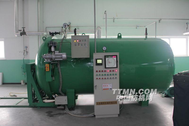 我公司吸收國外同類產品的精華而研制的新型自動真空蒸紗機,以下簡稱蒸紗機具有全自動化控制,生產效率高等優(yōu)點。成為目前理想的給濕定型設備。它適用于以棉、麻、毛、真絲、化纖等為原料的紡織單位,其用途是將具備織造條件的絲線在合并加捻后進行給濕定型,即在多次真空和一定溫度范圍下增加濕度,降低紗線伸縮率,改善產品手感、光澤度,提高紗線張力、強度,同時消除靜電及各部分的不平衡應力。該蒸紗機的使用特點是:適用范圍廣泛,定型后產品的物理性能如:強力、伸長度等不受影響,同時使針織效率提高10%;整經、織造效率提高15%;又使染色布均勻,還可以降低失重率.