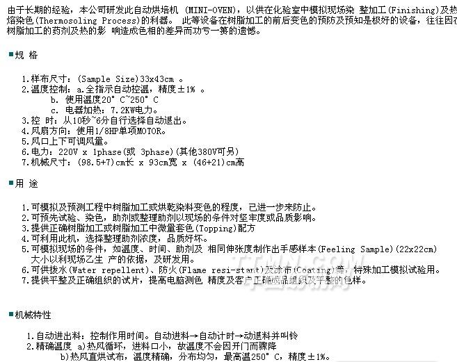 您所在的位置:紡機(jī)網(wǎng) >> 廈門瑞比精密機(jī)械有限公司 >> 烘焙固處試驗機(jī)
