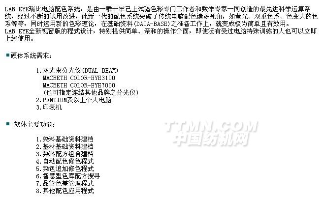 您所在的位置:紡機網(wǎng) >> 廈門瑞比精密機械有限公司 >> 瑞比電腦配色系統(tǒng)