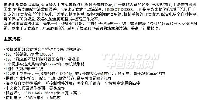 您所在的位置:紡機(jī)網(wǎng) >> 廈門(mén)瑞比精密機(jī)械有限公司 >> 實(shí)驗(yàn)室用全自動(dòng)滴液機(jī)