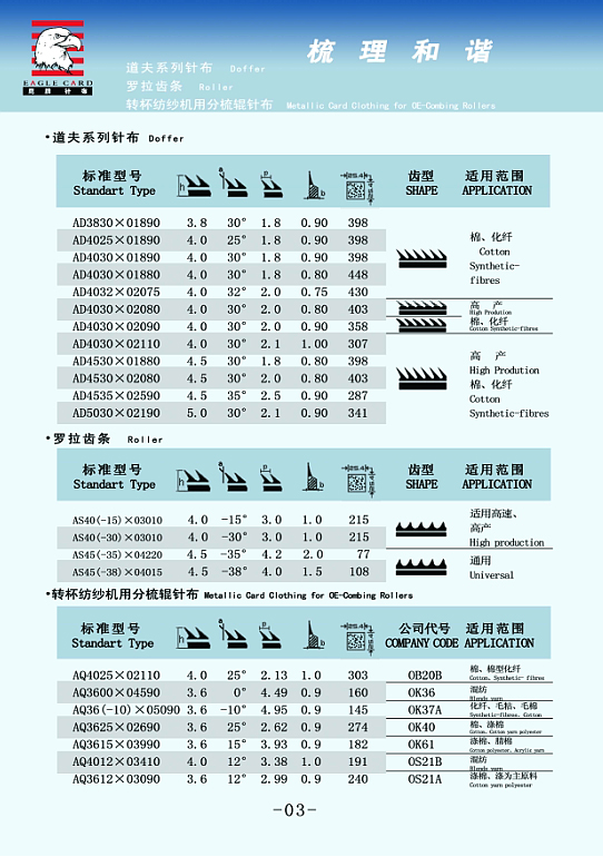您所在的位置:紡機(jī)網(wǎng) >> 無錫市江鷹針布有限公司 >> 道夫針布、羅拉齒條