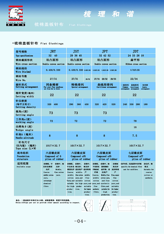 您所在的位置:紡機網(wǎng) >> 無錫市江鷹針布有限公司 >> 蓋板針布