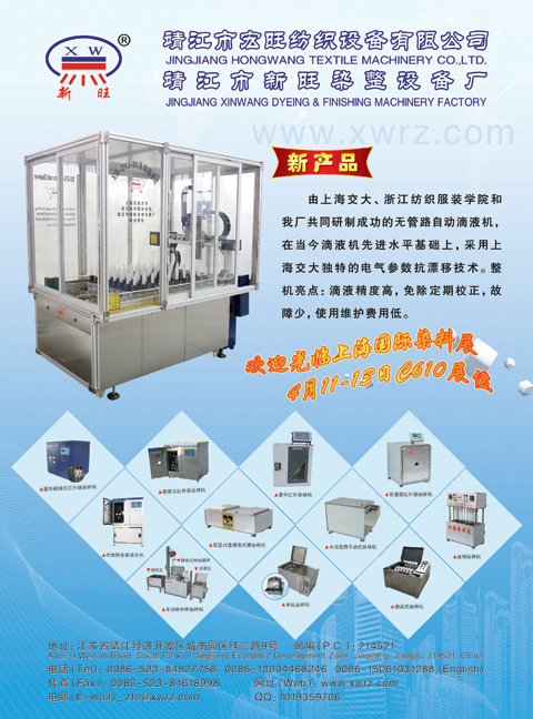 您所在的位置:紡機(jī)網(wǎng) >> 靖江市宏旺紡織設(shè)備有限公司 >> XW-DYJ-80自動滴液機(jī)