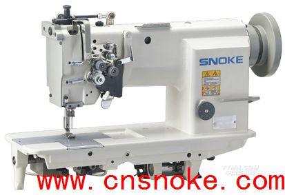 斯諾克電子科技有限公司SNK20518/20528本機(jī)采用雙直針,立式自動(dòng)加油旋梭勾線,滑桿挑線,構(gòu)成二行雙線鎖式線跡,針桿擺動(dòng)與送布同步送料,能確保線跡均勻及防止縫料滑移,旋鈕式圓盤調(diào)節(jié)針距和杠桿式倒順?biāo)土蠙C(jī)構(gòu)使操作更為簡(jiǎn)便。上下軸用滾珠軸承支承,同步齒形帶轉(zhuǎn)動(dòng),柱塞式油泵潤(rùn)滑系統(tǒng),適用于縫制襯衫、制服、大衣、女內(nèi)衣、女仔褲等。