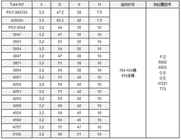 4、新鋼領上車時,鋼絲圈要偏輕選用,一般可選用比正常使用的號數(shù)輕1號,但要視紡紗張力而定。