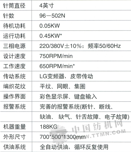 10、針簡(jiǎn)直徑為4英寸,針數(shù)為96N到502N。