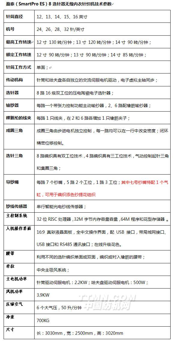 適宜穩(wěn)定、高效大批量生產(chǎn)的盈泰(SMARTPRO ES)8選針器無(wú)縫內(nèi)衣針織機(jī)