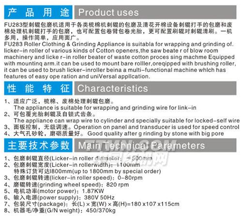 您所在的位置:紡機(jī)網(wǎng) >> 青島精立達(dá)紡織機(jī)械輔機(jī)廠 >> FU283型刺輥包磨機(jī)